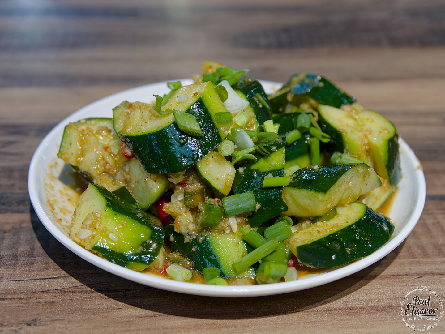 Then, Cuke—beaten cucumbers that arrive glossy with garlic, vinegar, and a slow‑building chilli heat that crackles across your tongue. And, of course, the dumplings, pleated by hand, their skins translucent and delicate, hiding a filling so juicy it practically bursts. Everything is spicy, but it’s a clever, layered spice that lifts the richness rather than torching your palate into submission.