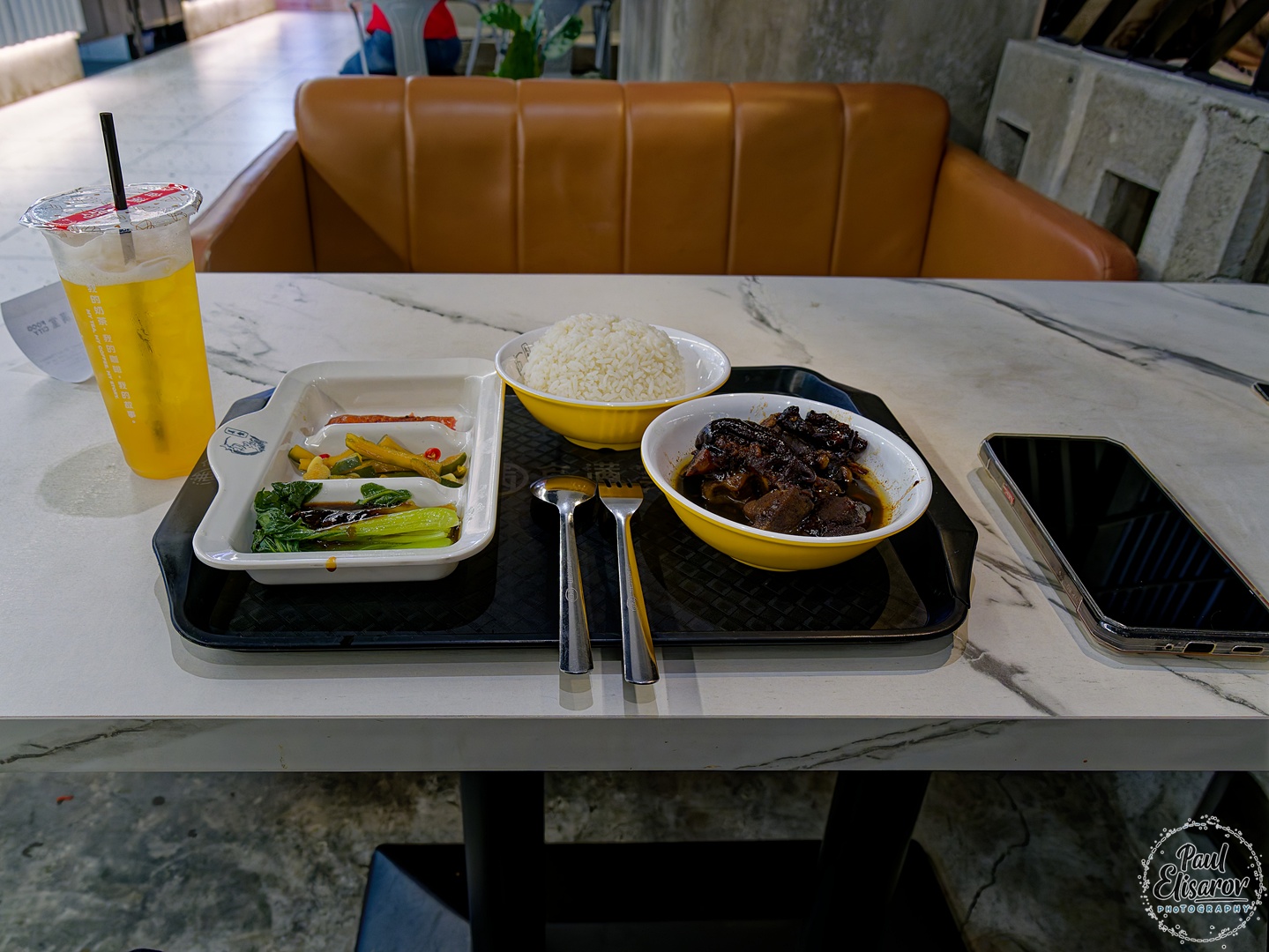 Prices here feel like a miracle. A full, deeply satisfying meal for one can start as low as fourteen ringgit, a number so small it makes you double‑check the board. But the quality defies the math. I have quite a lot of favourite dishes here, but the one I return to again and again—the one I have a photograph of, saved like a precious memory—is the braised pig trotters with rice and three side dishes. It cost me RM13.50. That rich, sticky mound of trotter meat arrived slow‑cooked to a state of total, gelatinous surrender, its sauce dark and sweet‑savoury, soaking into the rice below. Three side dishes completed the tray, little bursts of pickled vegetable, tofu, and greens that cut through the richness with perfect clarity. For less than the price of a cocktail in most cities, I had a feast.